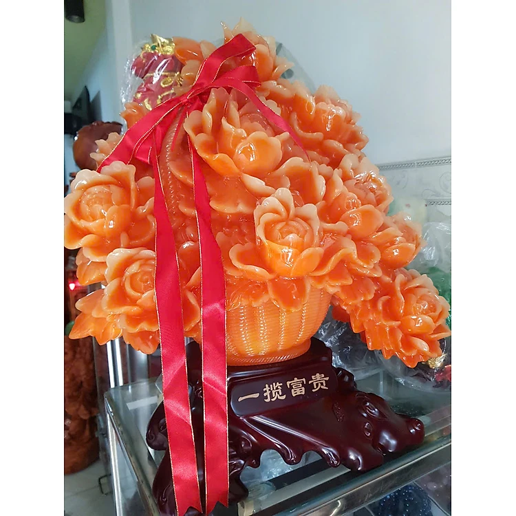 Tượng Bình Hoa Mẫu Đơn Đỏ Cam Mới To Dây Đỏ May Mắn Quá Hoành Tráng Đẹp Lắm Size Cao 55cm Ngang 48cm Sâu 31cm biểu tượng sự Hưng Thịnh , thịnh vượng, phồn vinh, Giàu Sang , Phú Quý, Giàu Sang , Phú Quý trưng phòng khách nhà công công quà tặng ý nghĩa ạ