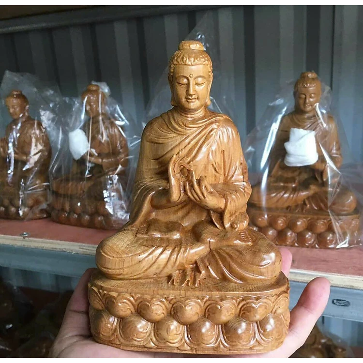 Tượng nam mô bổn sư thích ca bằng gỗ bách xanh thơm nức kt cao 15cm