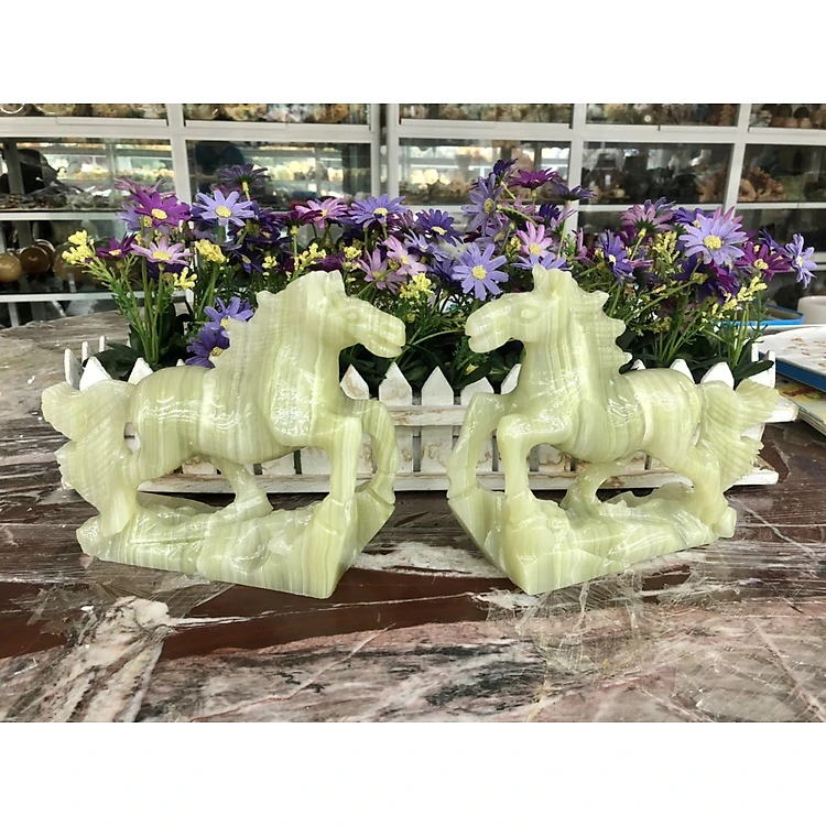 Tượng Cặp Ngựa phi lướt đại phong thủy rước công danh tài lộc đá ngọc Onyx trang trí phòng khách, bàn làm việc - Dài 20 cm