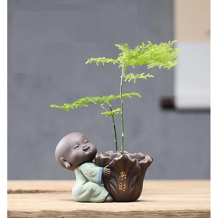 Tượng chú tiểu ôm cải thảo Vạn Sự May Mắn - trồng cây, cắm hoa & trang trí