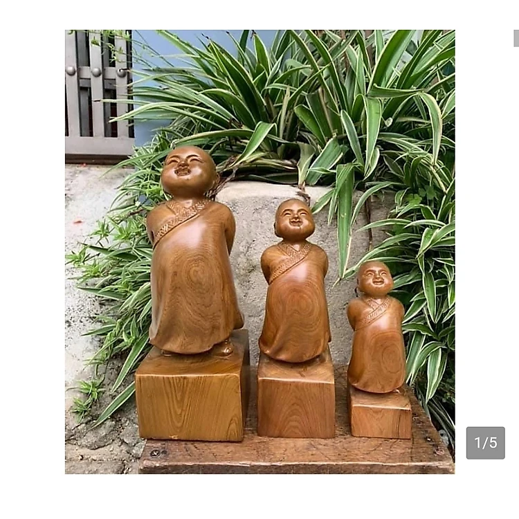 Tượng chú tiểu vạn sự tùy duyên bằng gỗ bách xanh thơm nức kt cao 16 cm
