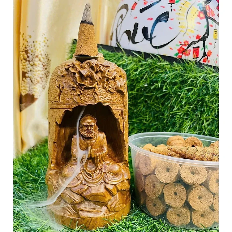 Tượng chuông đạt ma sư tổ xông trầm gỗ bách xanh kt cao 30×14cm