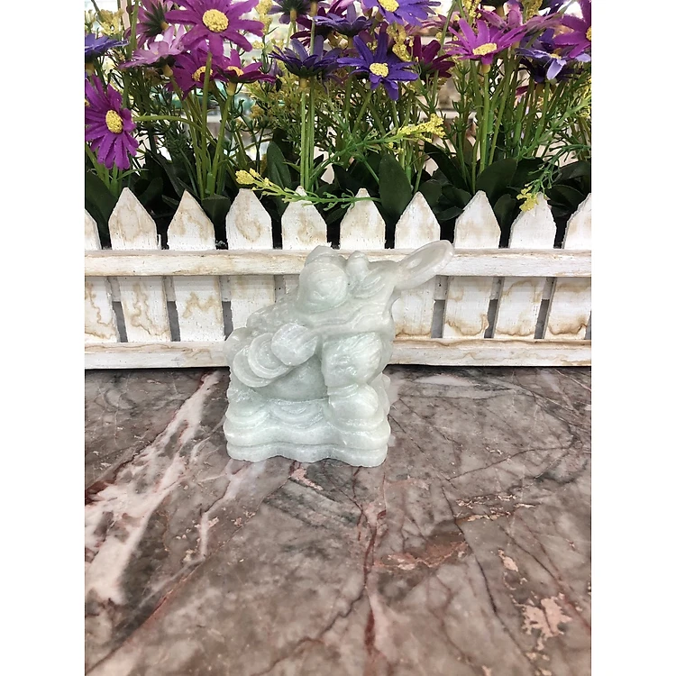 Tượng Cóc Ba Chân, Cóc Ngậm Tiền, Thiềm Thừ phong thủy chiêu tài lộc đá cẩm thạch trắng xanh - Dài 7 cm