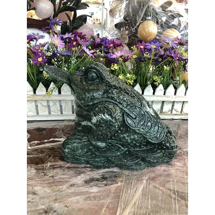 Tượng Cóc Ba Chân, Cóc Ngậm Tiền, Thiềm Thừ phong thủy chiêu tài lộc đá ngọc Ấn Độ - Dài 20 cm