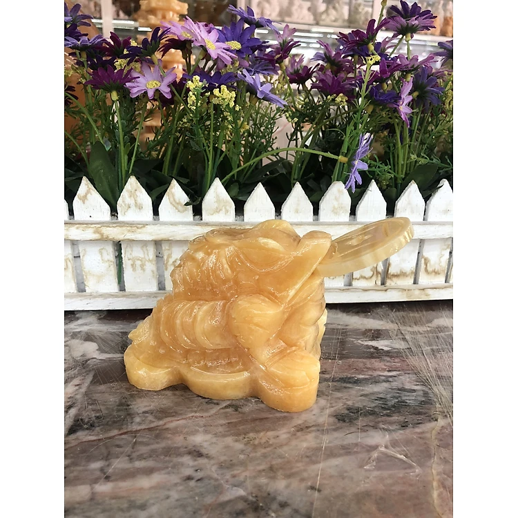 Tượng Cóc Ba Chân, Cóc Ngậm Tiền, Thiềm Thừ phong thủy chiêu tài lộc đá ngọc hoàng long - Dài 10 cm
