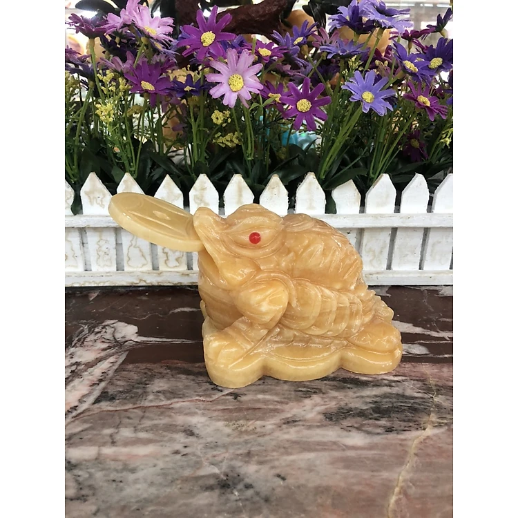 Tượng Cóc Ba Chân, Cóc Ngậm Tiền, Thiềm Thừ phong thủy chiêu tài lộc đá ngọc hoàng long - Dài 12 cm
