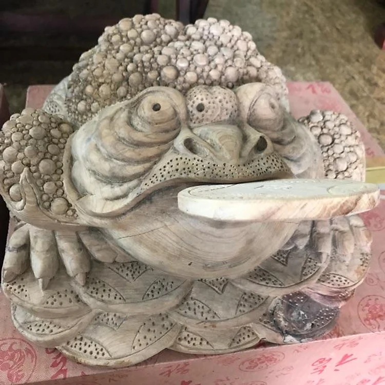 Tượng Cóc Gỗ Ngọc Am Ngậm Tiền giữ tiền thơm nhẹ size 32cm x 34cm Anh Chị trưng phòng khách nhà công ty may mắn tài lộc ạ