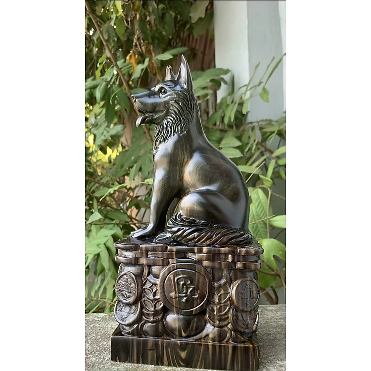 Tượng con chó phong thủy cầu tài lộc bằng gỗ mun hoa kt cao 30cm