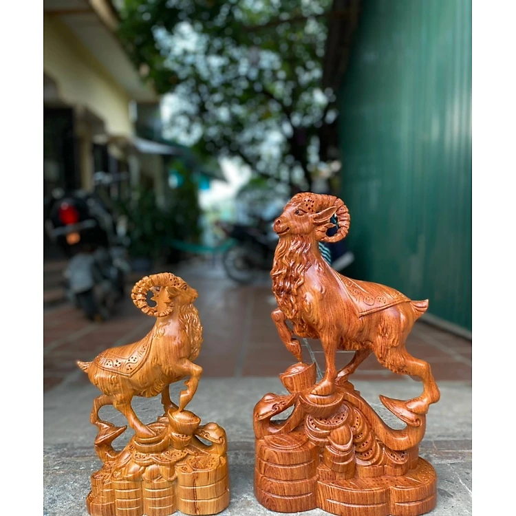 Tượng con dê phong thủy hút tài lộc bằng gỗ hương đá kt 50×17×13cm