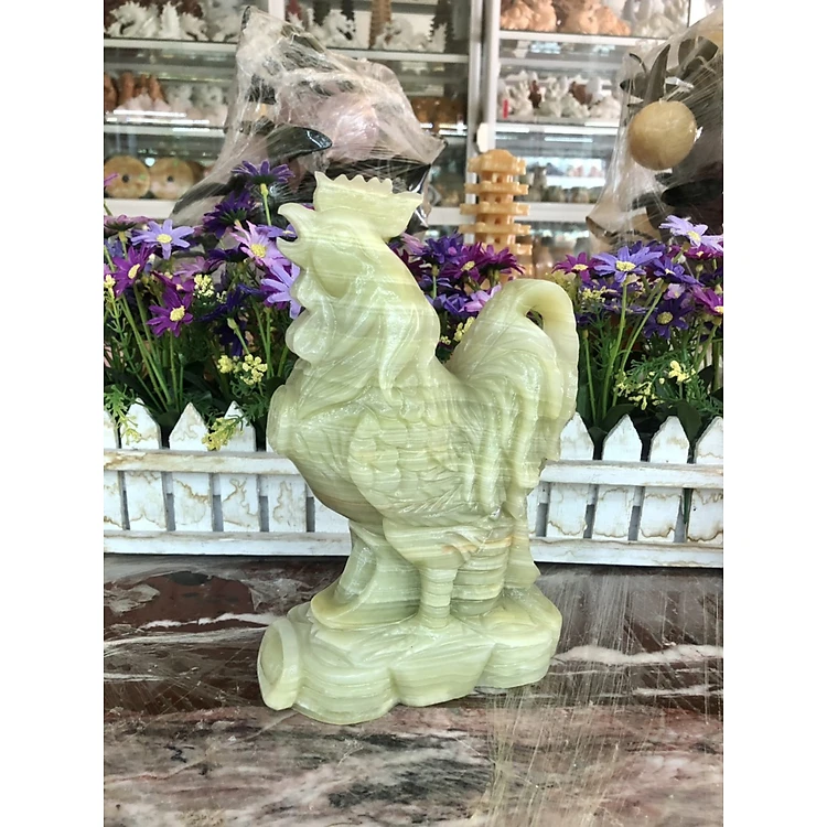 Tượng con Gà giáp phong thủy đá ngọc Onyx - Dài 20 cm