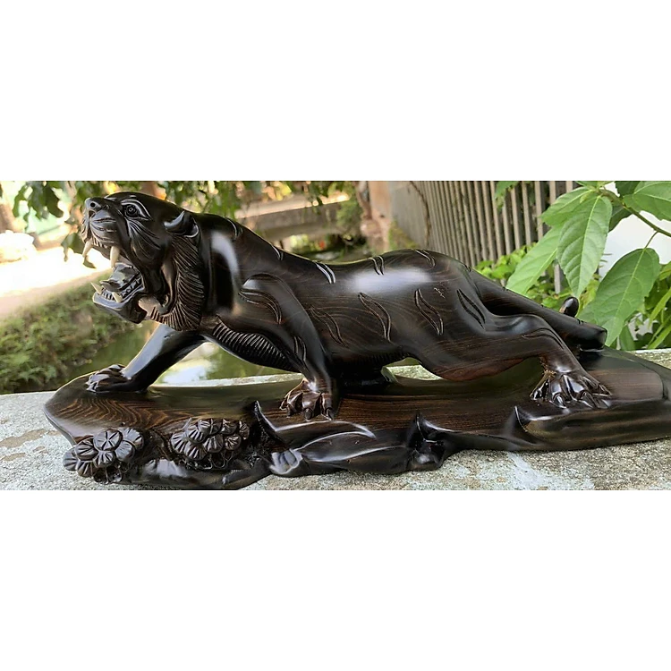 Tượng con hổ phong thủy bằng gỗ mun hoa kt 40cm