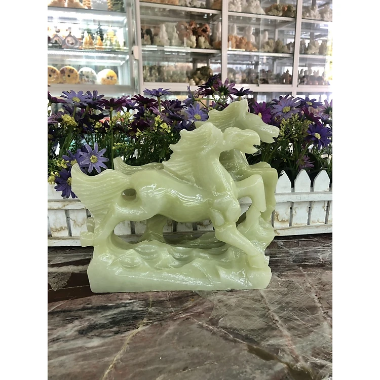 Tượng con ngựa phong thủy rước công danh tài lộc đá ngọc Onyx trang trí phòng khách, bàn làm việc - Dài 20 cm