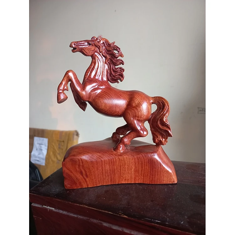 Tượng con ngựa trang trí phong thủy bằng gỗ hương đá kt cao 20×15×8cm
