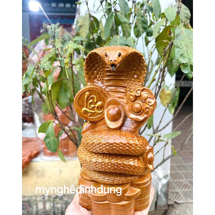 Tượng con rắn phong thủy cầu tài lộc bằng gỗ bách xanh cao 20x10x8cm