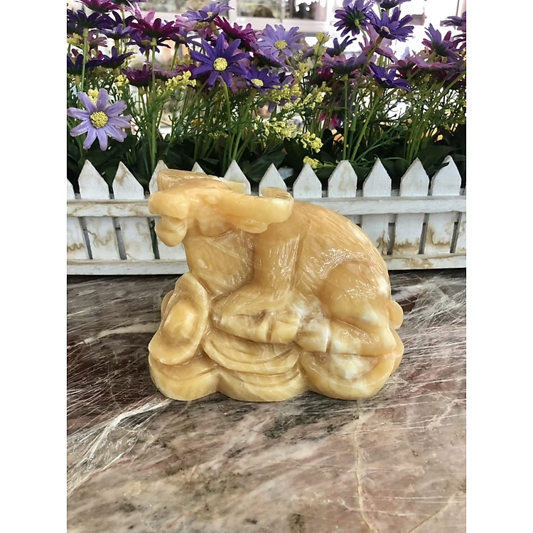 Tượng con trâu giáp phong thủy đá ngọc hoàng long bàn làm việc - Dài 15 cm