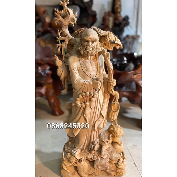 Tượng cụ đạt ma sư tổ bằng gỗ ngọc am thơm nức nhiều giàu kt cao 1m x39×20cm