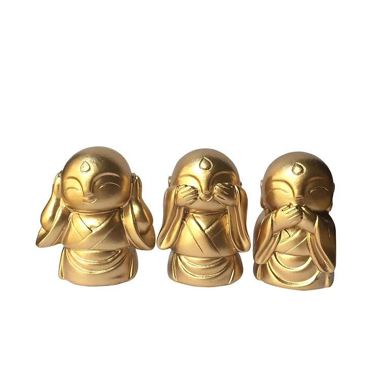 + Tượng Đá Bộ Ba Chú Tiểu Tam Không được làm từ chất liệu đá poly, phủ sơn nhũ vàng.