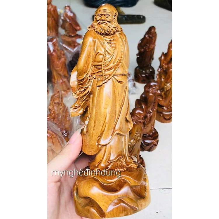Tượng đạt ma sư tổ mini bằng gỗ bách xanh thơm nức kt cao 20×8×6cm