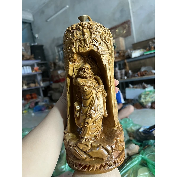 Tượng đạt ma sư tổ xông trầm ngồi thiền trong chuông bằng gỗ bách xanh thơm phức kt cao 40×12×12cm