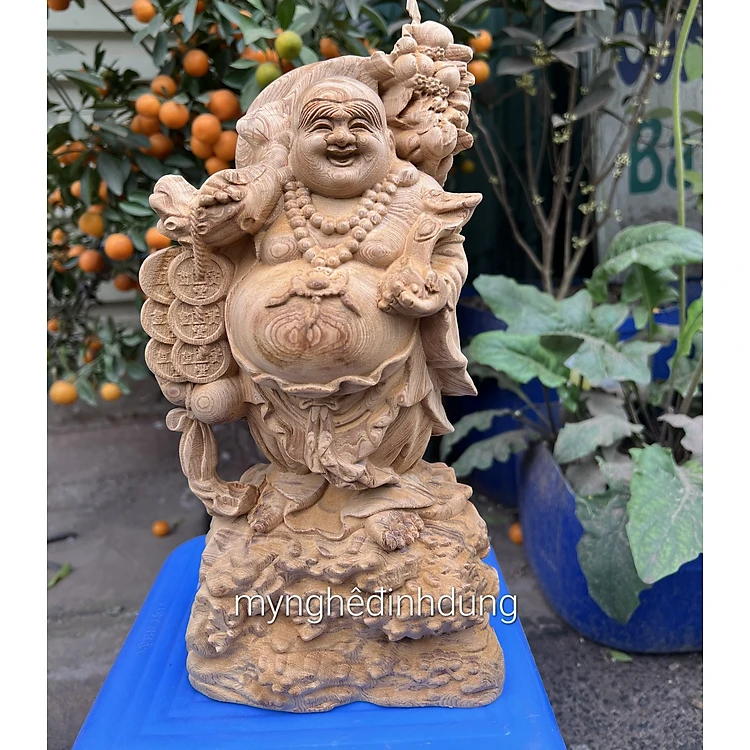 TƯỢNG ĐIÊU KHẮC PHẬT DI LẶC NGÁNH CÀNH ĐÀO BẰNG GỖ NGỌC AM KT CAO 30×15×10CM