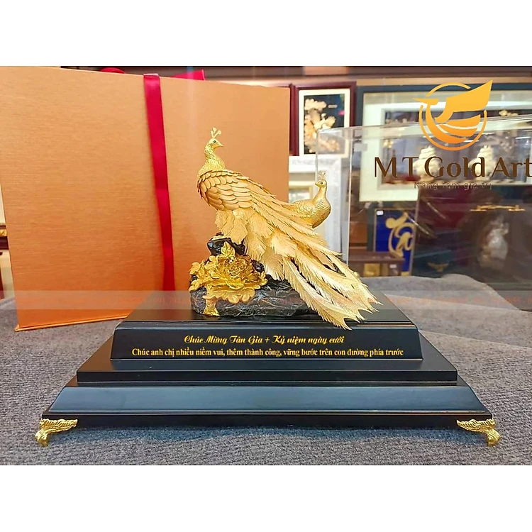 Tượng Đôi Chim Công Dát Vàng 24K (M02) MT Gold Art- Hàng chính hãng, trang trí nhà cửa, quà tặng dành cho sếp, đối tác, khách hàng.
