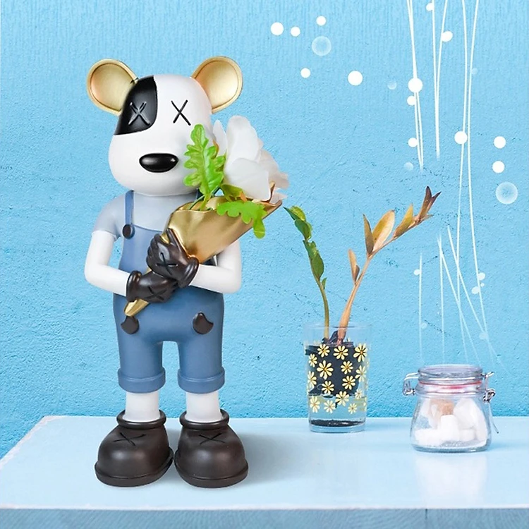 Tượng gấu ôm 45cm DECOR phòng sang trọng bền đẹp - Tượng để bàn Gấu ôm hoa hiện đại Đa năng cao cấp ORD49