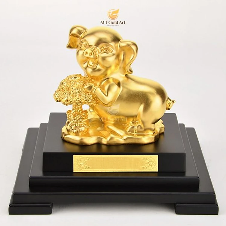 Tượng Heo tài lộc dát vàng (14x17x22cm) M05 MT Gold Art- Hàng chính hãng, trang trí nhà cửa, phòng làm việc, quà tặng sếp, đối tác, khách hàng, tân gia, khai trương