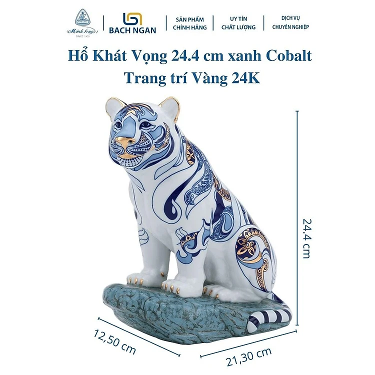 Tượng Hổ Khát Vọng 24.4 cm Trang trí Vàng 24K Nhiều Màu dùng trang trí nhà cửa, nội thất, tặng quà tết