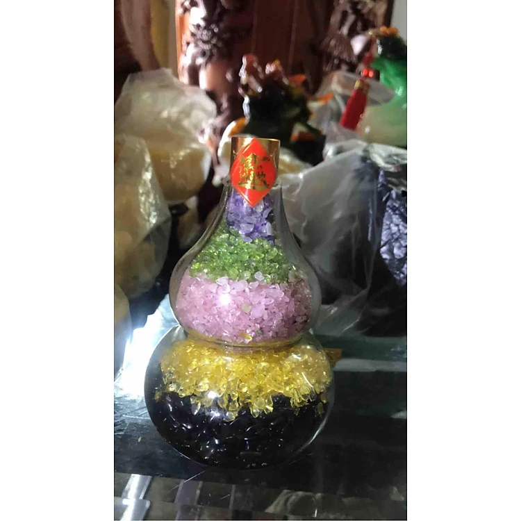 Tượng Hồ Lô phong thủy Hút Tài Thạch Anh đa sắc màu tự nhiên Anh Chị để bàn làm việc bàn thờ Thần Tài Size vừa cao 15cm ngang 10cm ĐẸP ạ