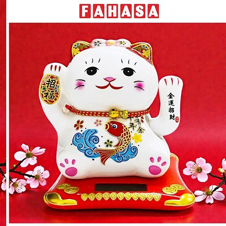 Tượng Mèo Thần Tài Vẩy Tay 12 cm - Trang Trí Tết - T87 - Tai Mèo Màu Đỏ