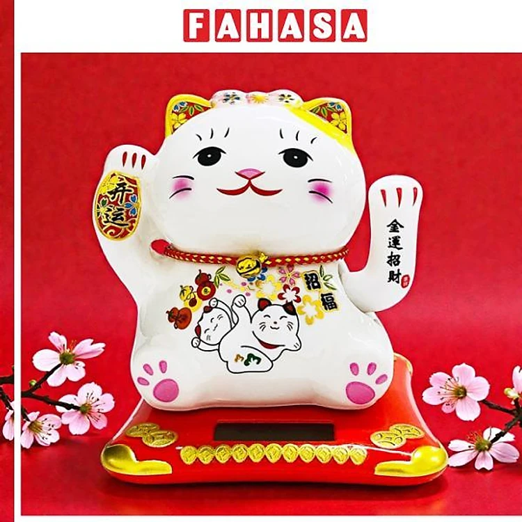 Tượng Mèo Thần Tài Vẩy Tay 12 cm - Trang Trí Tết - T87 - Tai Mèo Màu Vàng
