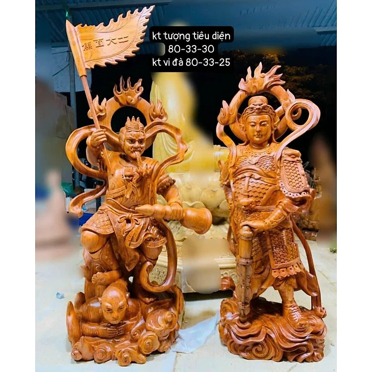 Tượng ngài tiêu diện đại sĩ kt 80×33×30cm và ngài vi đà hộ pháp kt 80×33×25cm bằng gỗ hương đá kt hương đá