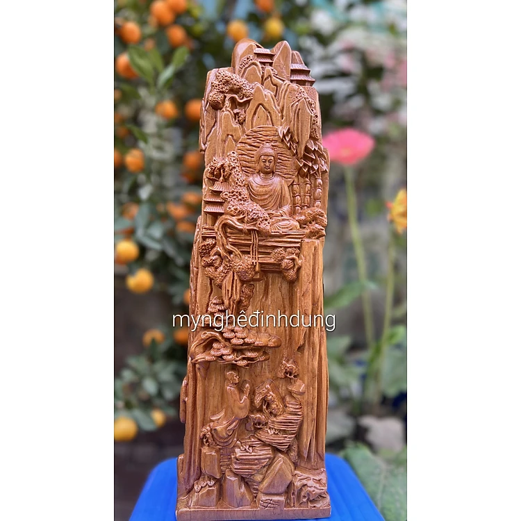 Tượng nhất tâm bái phật bằng gỗ bách xanh liền kt cao 40×12×9cm