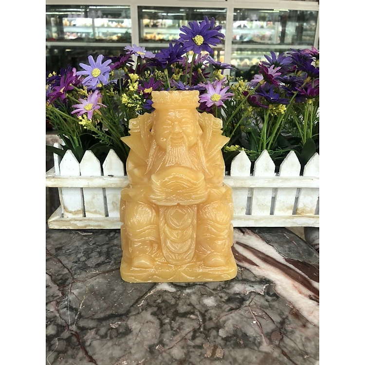 Tượng ông Kim Tiền cầm thỏi vàng kim nguyên bảo mang lại may mắn tài lộc đá ngọc hoàng long đặt bàn thờ - Cao 15 cm