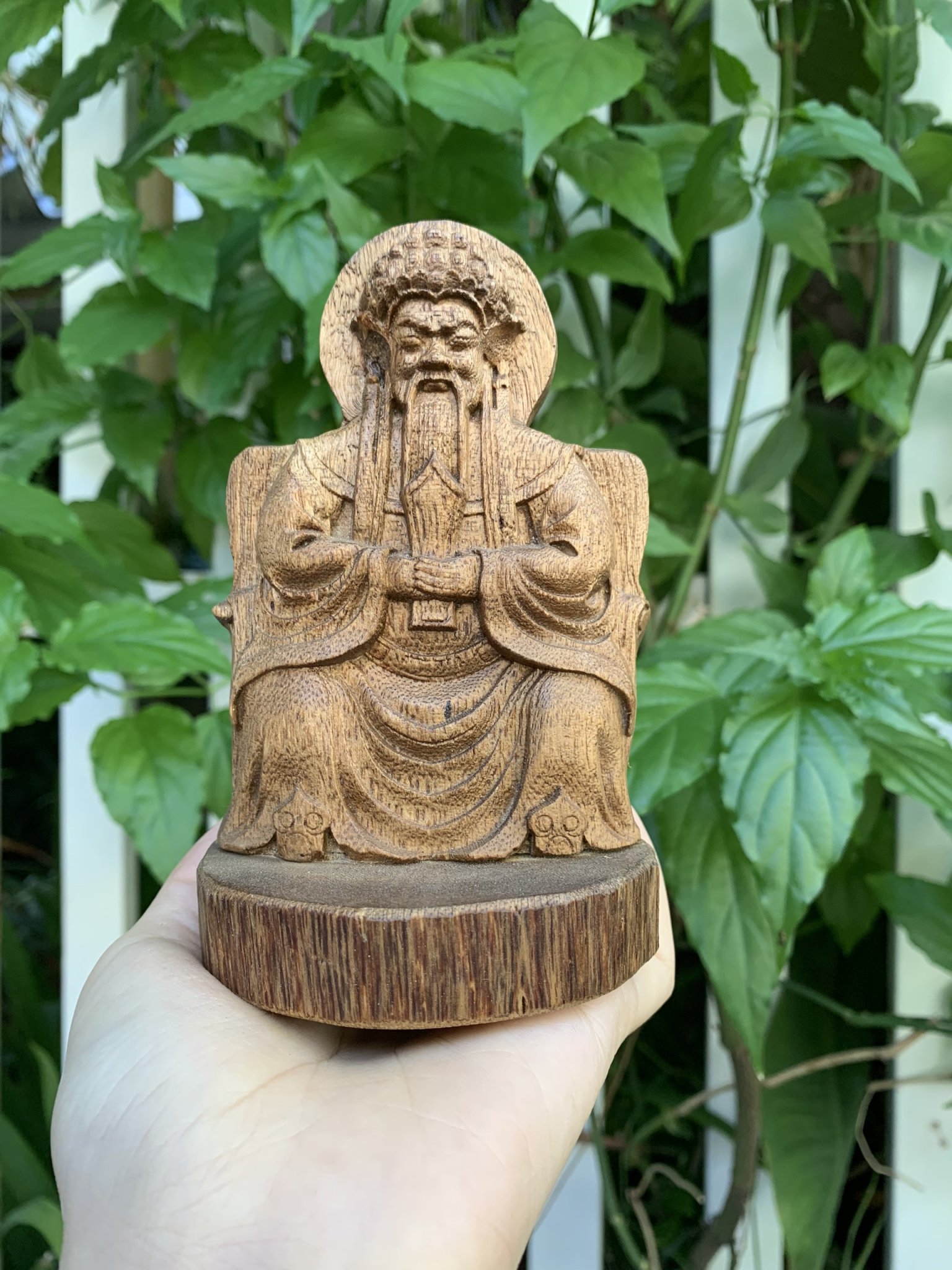 Tượng ông Thần Tài kim tiền, thần phát, thần tiền phong thủy gỗ trầm hương tự nhiên