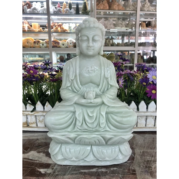 Tượng Phật A Di Đà ngồi đài sen đá cẩm thạch trắng xanh - Cao 30 cm