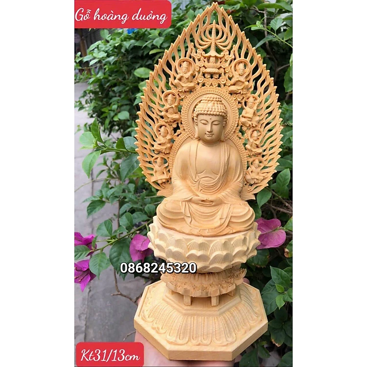 Tượng phật adi đà bằng gỗ hoàng dương kt cao 31×13cm