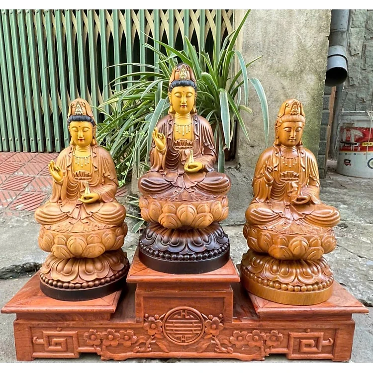 Tượng phật bà mẹ quan âm bồ tát bằng gỗ bách xanh thơm phức ,sơn pu giả cổ kt 30×15×15cm