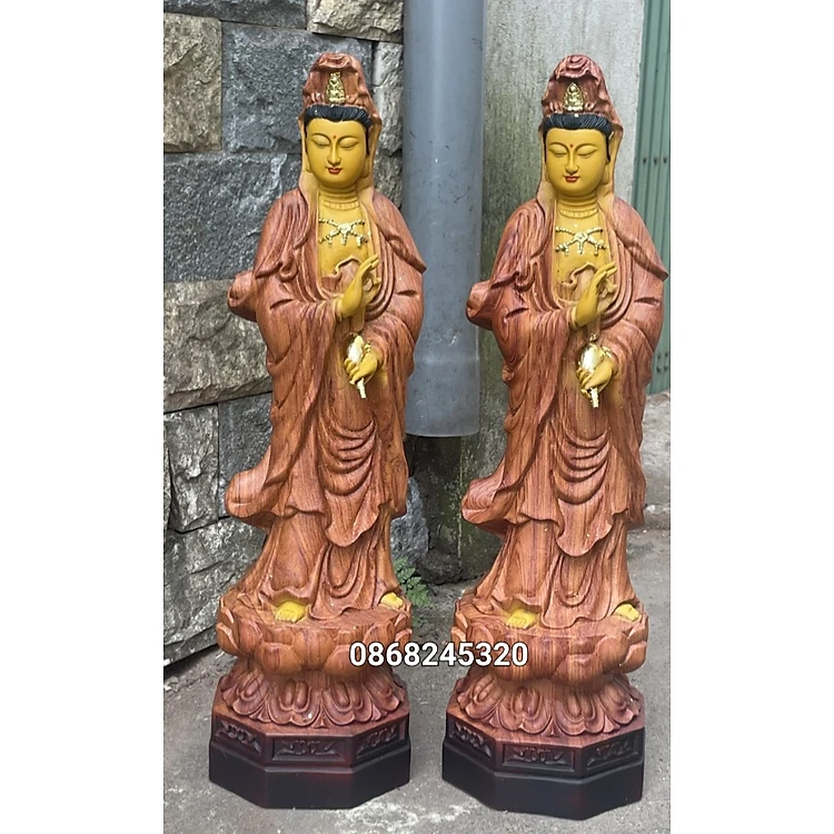 Tượng phật bà mẹ quan âm bồ tát bằng gỗ hương đá sơn pu giả cổ kt cao 60×17×17cm