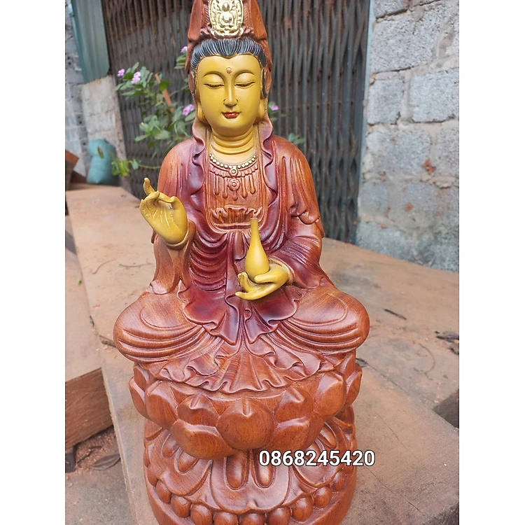 Tượng phật bà quan âm bồ tát bằng gỗ hương đá sơn pu giả cổ kt 40×20×20cm