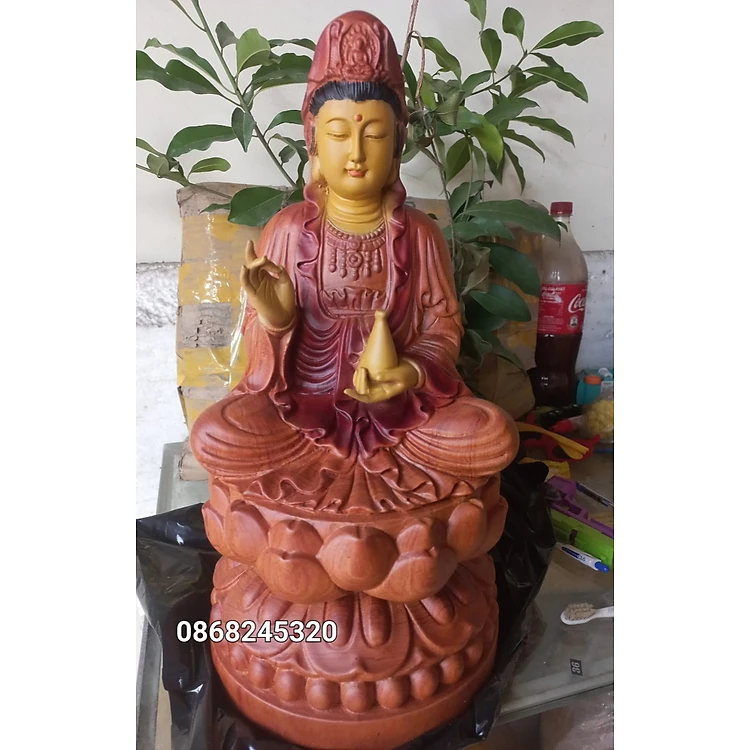 TƯỢNG PHẬT BÀ QUAN ÂM BỒ TÁT BẰNG GỖ HƯƠNG ĐÁ SƠN PU GIẢ CỔ KT CAO 40×20×20CM