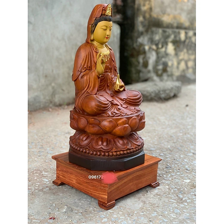 Tượng phật bà quan âm bồ tát bằng gỗ hương đá tô làm mầu giả cổ kt cao 50cm