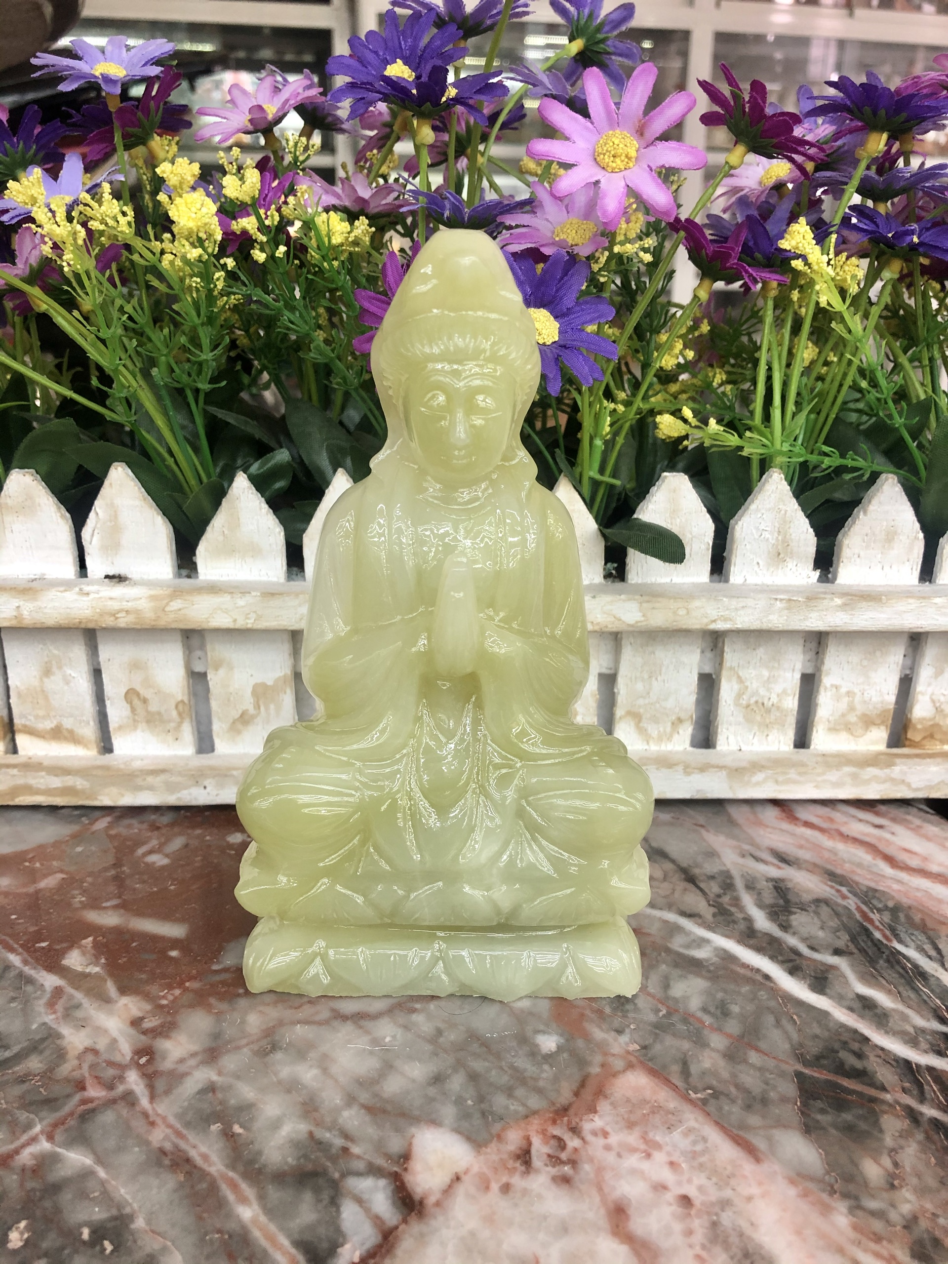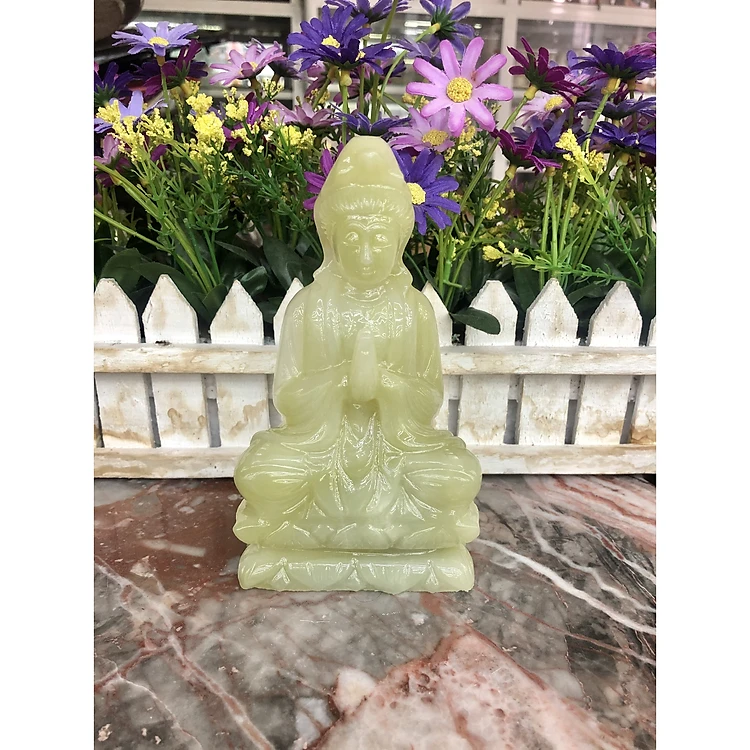 Tượng Phật Bà Quan Âm ngồi đài sen đá ngọc Onyx - Cao 15 cm