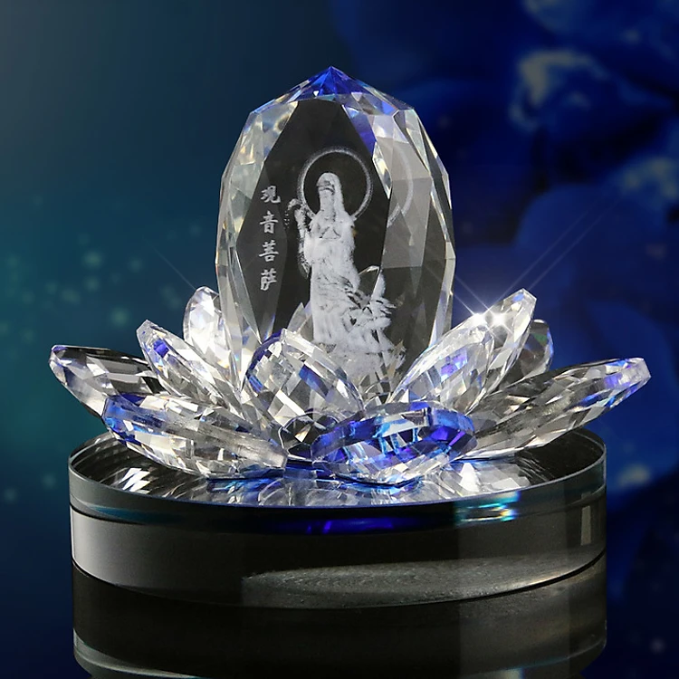 Tượng Phật Bà Quan Âm Tòa Sen Pha Lê Trong, Tượng Nước Hoa Quan Âm, Tặng Kèm Tinh Dầu Và Đế Chống Trượt