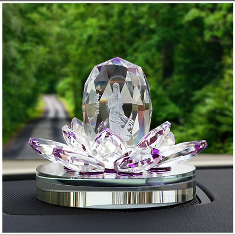 Tượng Phật Bà Quan Âm Tòa Sen Pha Lê Trong, Tượng Nước Hoa Quan Âm, Tặng Kèm Tinh Dầu Và Đế Chống Trượt