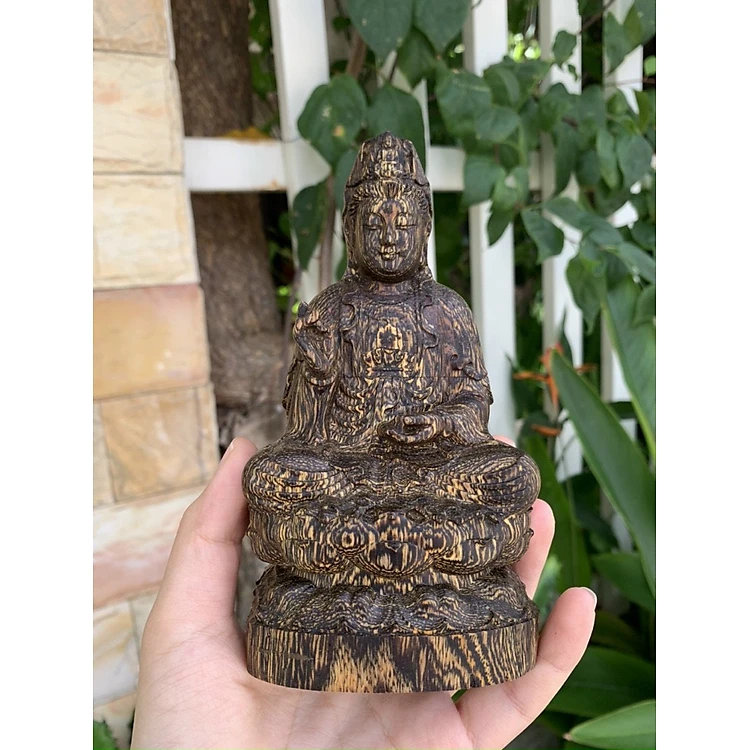 Tượng phật Bà Quan Thế Âm Bồ Tát phong thủy gỗ trầm hương sánh chìm tự nhiên cầu bình an, may mắn, sức khoẻ và tài lộc để bàn làm việc, taplo xe ô tô