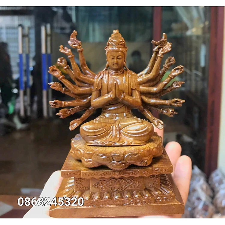 Tượng phật chuẩn đề tay bắt ấn bằng gỗ bách xanh thơm nức nức kt cao 13×8×6cm