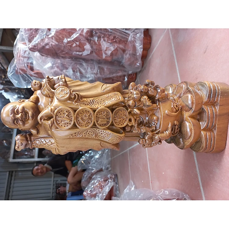 Tượng phật di lặc chúc phúc bằng gỗ bách xanh thơm nức kt 40×12×15cm