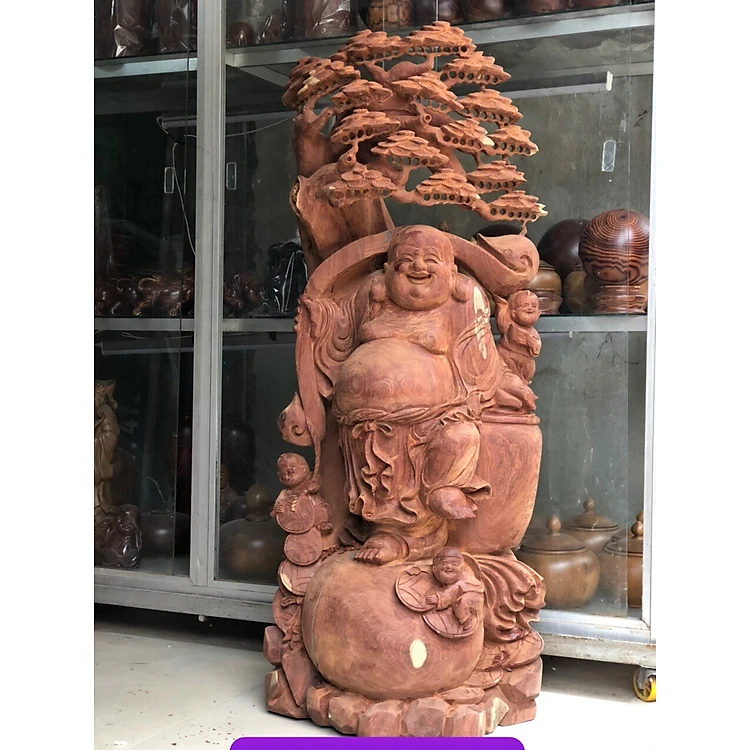 TƯỢNG PHẬT DI LẶC ĐỨNG DƯỚI GỐC CÂY TÙNG BẰNG GỖ TRẮC KT CAO 110×46×35CM