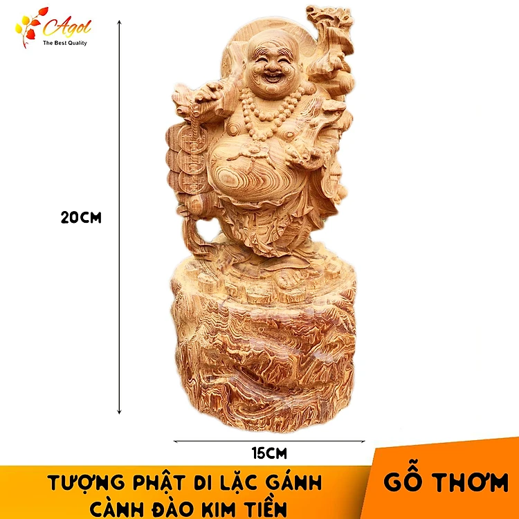 Tượng Phật Di Lặc Gánh Cành Đào Ngũ Lộc Kim Tiền Gỗ Thơm Bách Mộc Ngọc Am - Sản phẩm cao cấp cực thơm